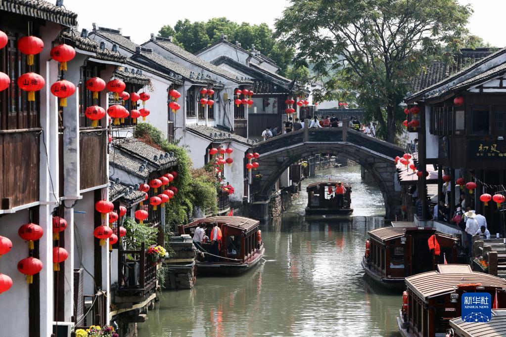 10月1日,游客在江蘇蘇州山塘街觀(guān)光游覽。