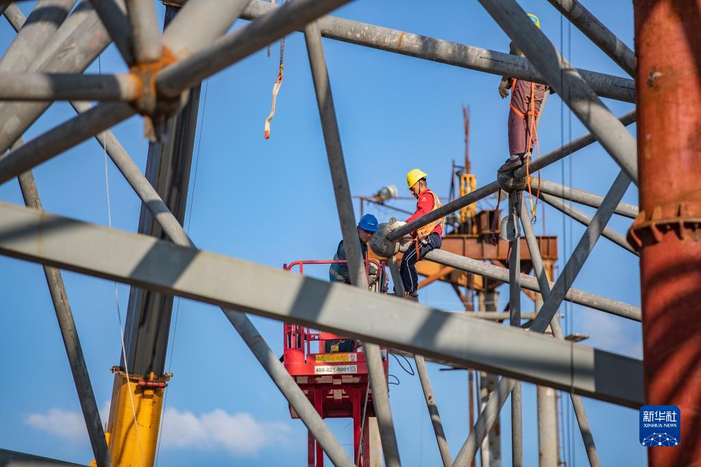 10月1日,在中建八局承建的重慶江北國際機場(chǎng)T3B航站樓施工現場(chǎng),工作人員在進(jìn)行鋼結構施工作業(yè)。