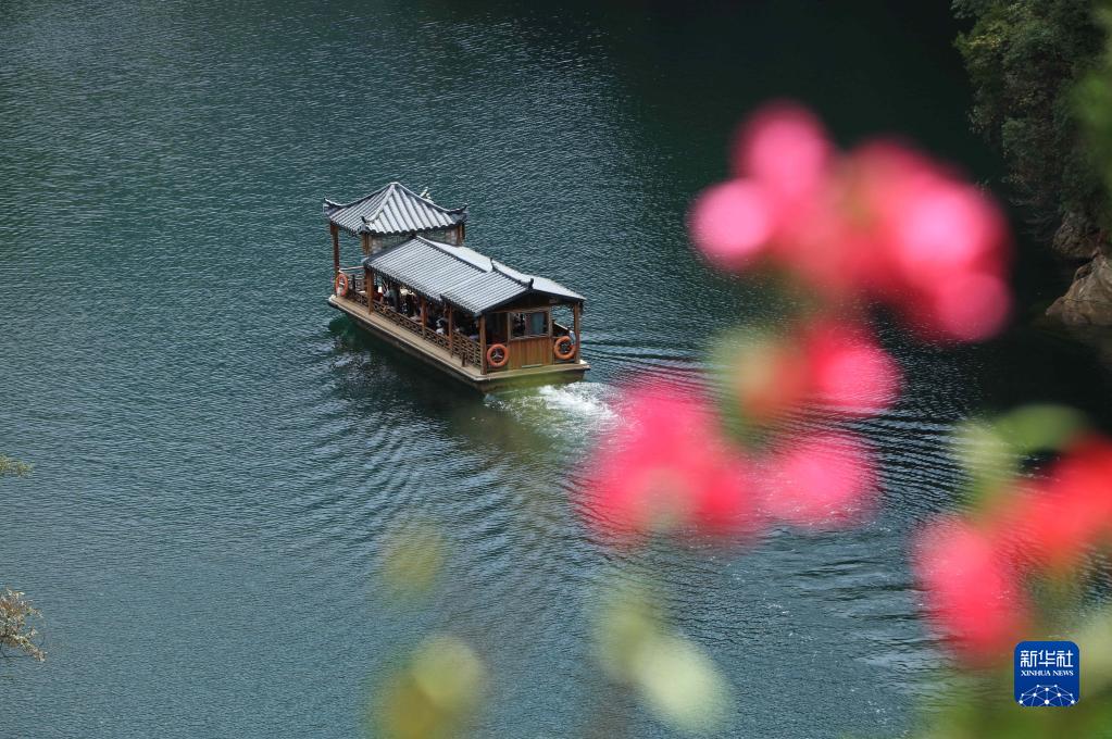 10月2日,游客在湖南張家界市武陵源區寶峰湖景區乘船游覽。