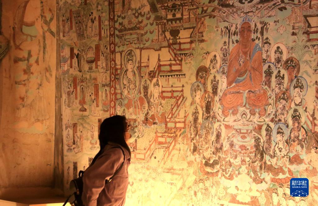 10月2日,游客在甘肅省敦煌市博物館參觀(guān)文物展。
