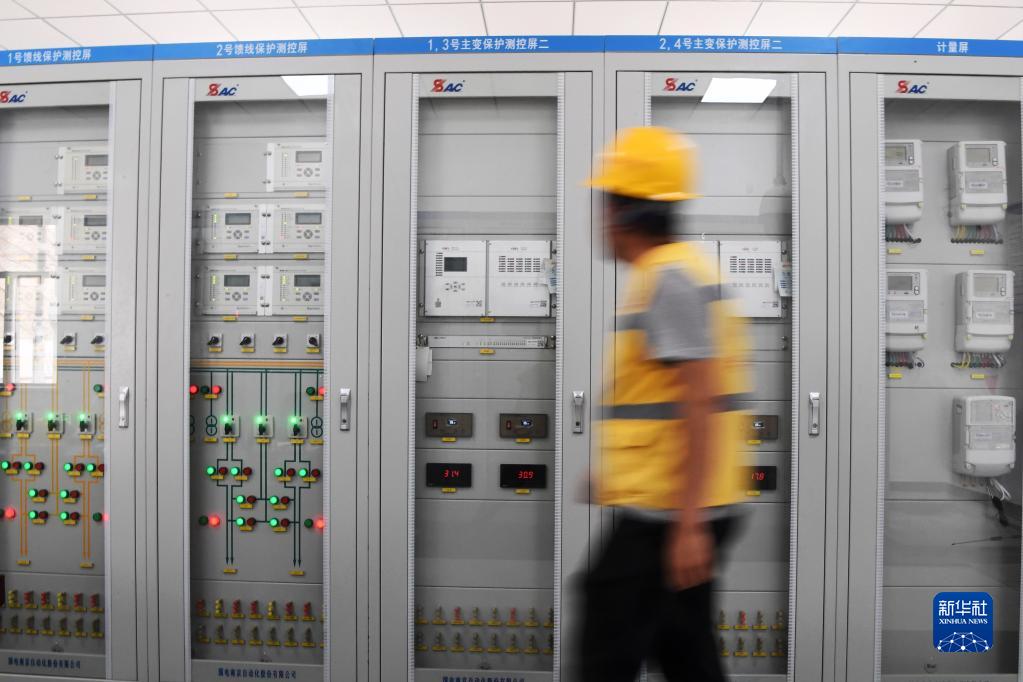 10月2日,中鐵電氣化局工作人員高海龍在銀蘭高鐵甘肅段一牽引變電所內查看設備運行情況。