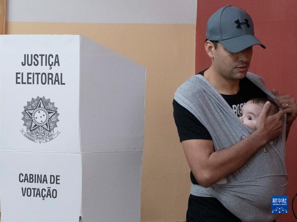10月2日,選民帶著(zhù)孩子在巴西里約熱內盧一處投票站參加投票。
