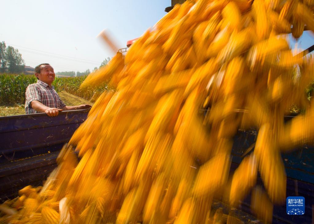 10月3日,在河南省夏邑縣會(huì )亭鎮,村民忙著(zhù)收獲玉米。