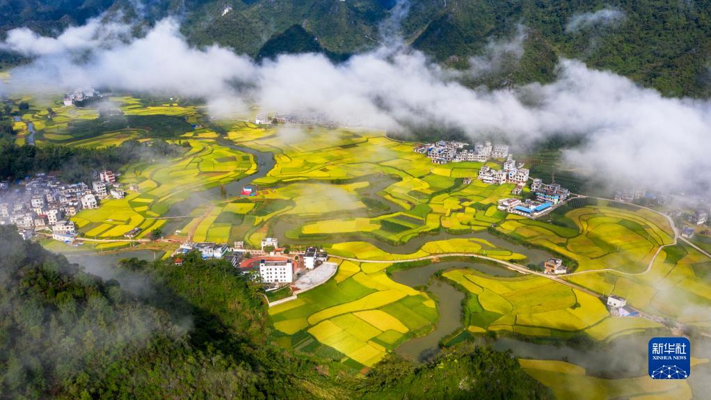 10月3日拍攝的廣西靖西市祿峒鎮平江村田園景色(無(wú)人機照片)。