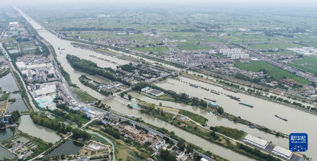 9月27日,貨船經(jīng)過(guò)淮安船閘(無(wú)人機照片)。