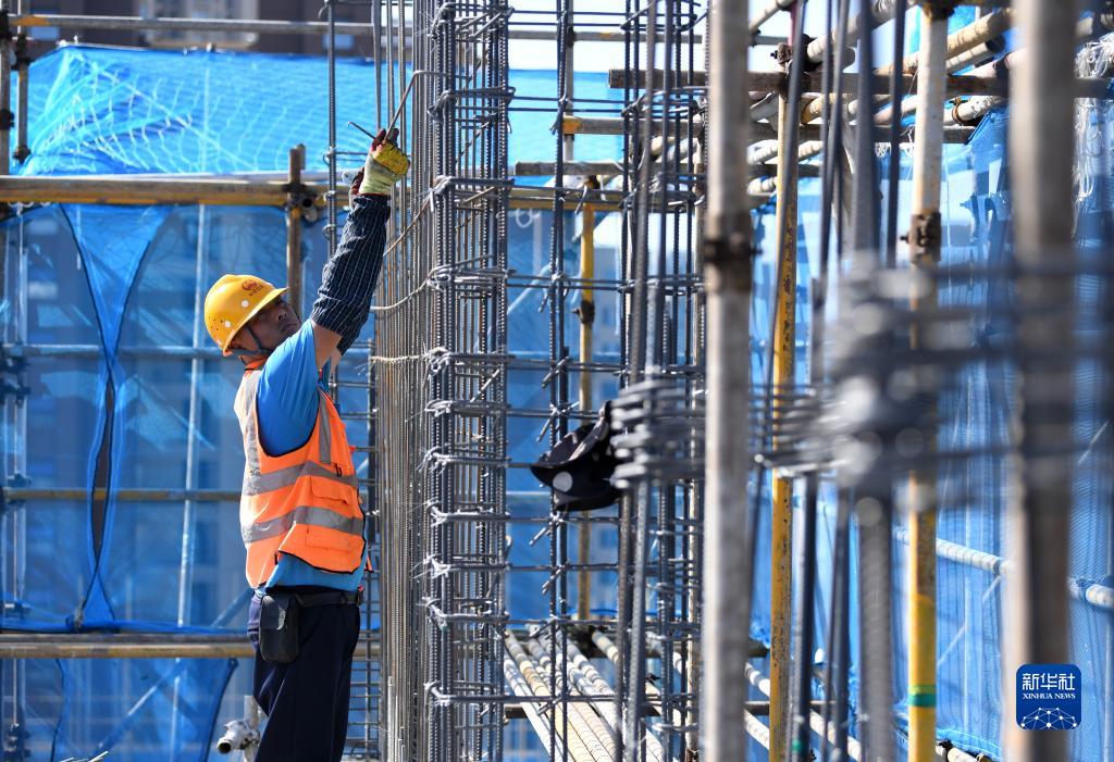 10月3日,工人在中鐵四局合肥市瑤海區荷塘家園一期二標安置房項目現場(chǎng)施工。