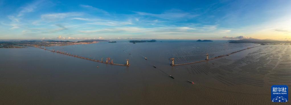 中鐵大橋局和中交路建承建的黃茅??绾Mǖ溃?022年6月28日攝,無(wú)人機照片)。黃茅??绾Mǖ罇|起珠海市平沙鎮,西接江門(mén)市斗山鎮,橫跨珠江口崖門(mén)入??邳S茅海水域,線(xiàn)路全長(cháng)約31公里,預計2024年建成通車(chē)。