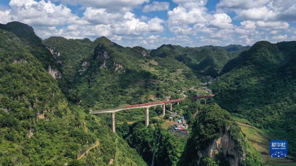 這是廣西南昆線(xiàn)清水河大橋秋日風(fēng)光(10月4日攝,無(wú)人機照片)。