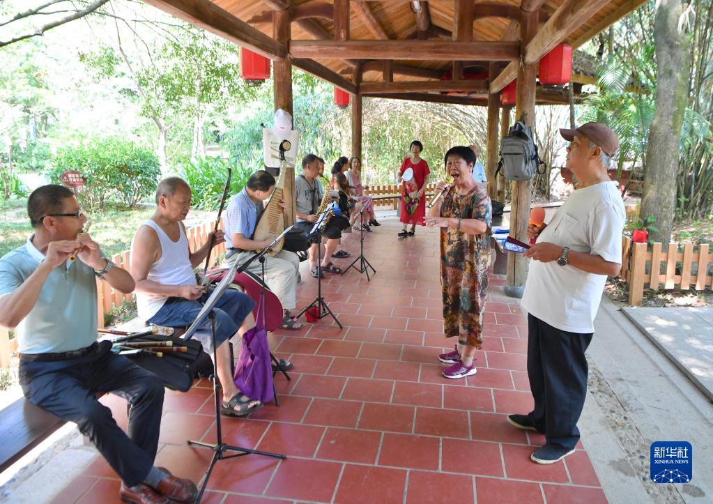 10月4日,福州市金山公園休閑長(cháng)廊內,老人們在即興演唱。