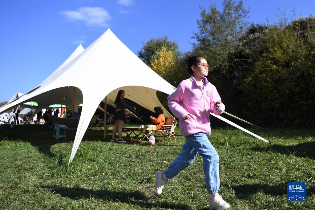 10月4日,市民在甘肅省蘭州市石佛溝一處露營(yíng)地休閑。