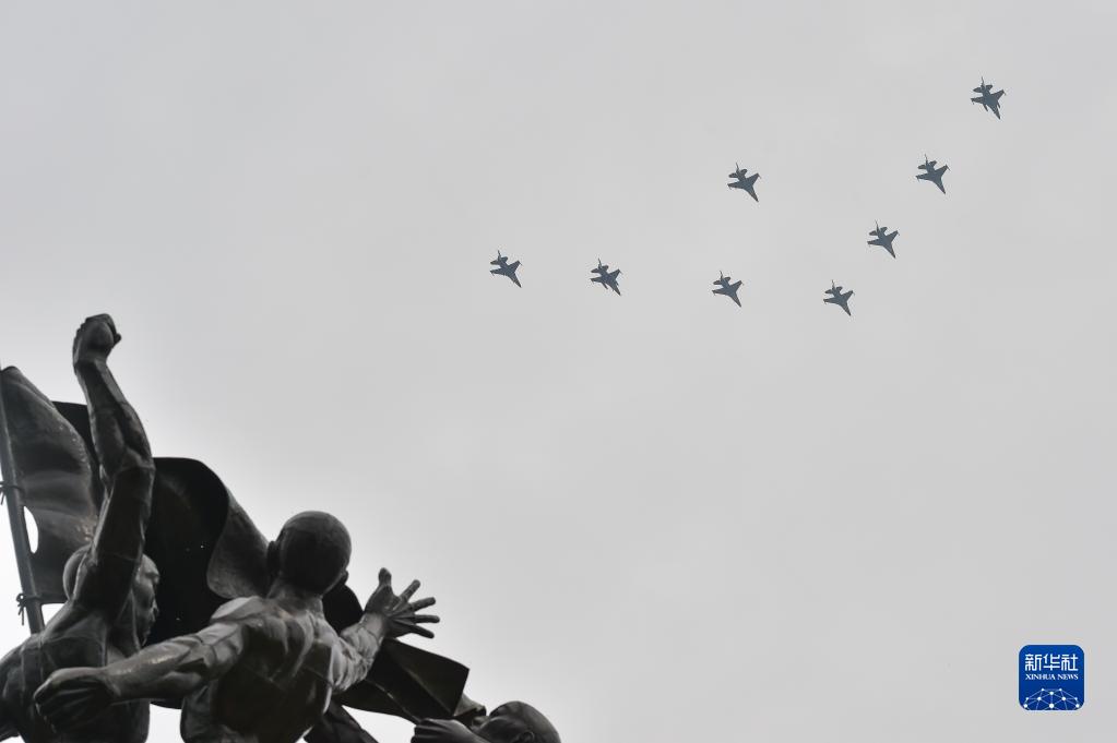10月5日,在印度尼西亞雅加達,飛機在國民軍建軍77周年慶?;顒?dòng)上表演。