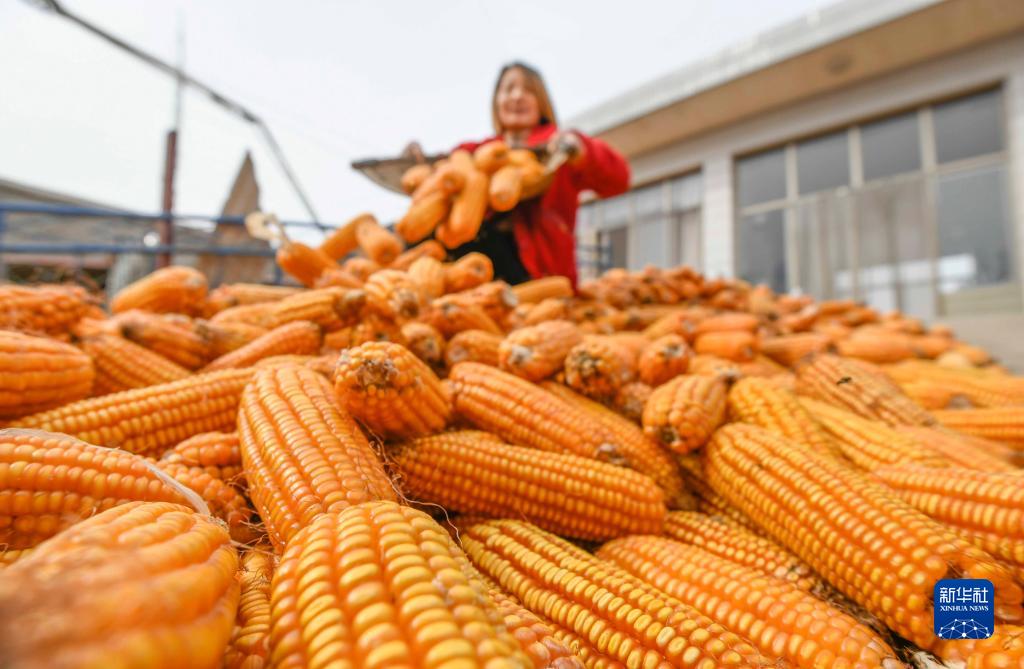 10月5日,河北省遵化市湯泉滿(mǎn)族鄉鲇魚(yú)池村的農民在晾曬玉米。