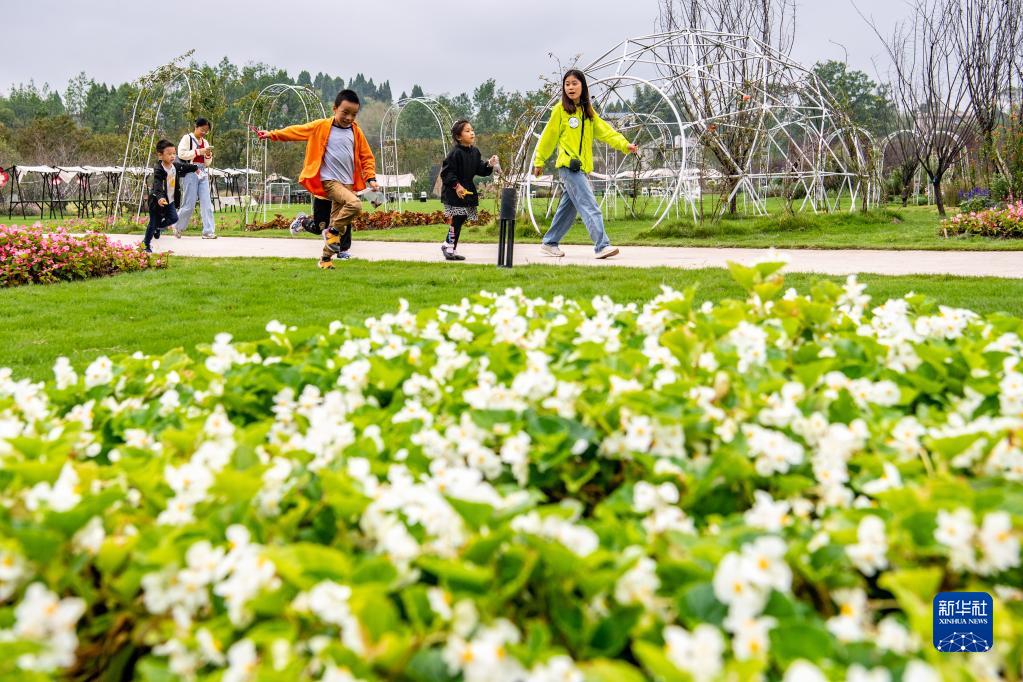 10月5日,在天華百卉園內,小朋友在戶(hù)外玩耍。
