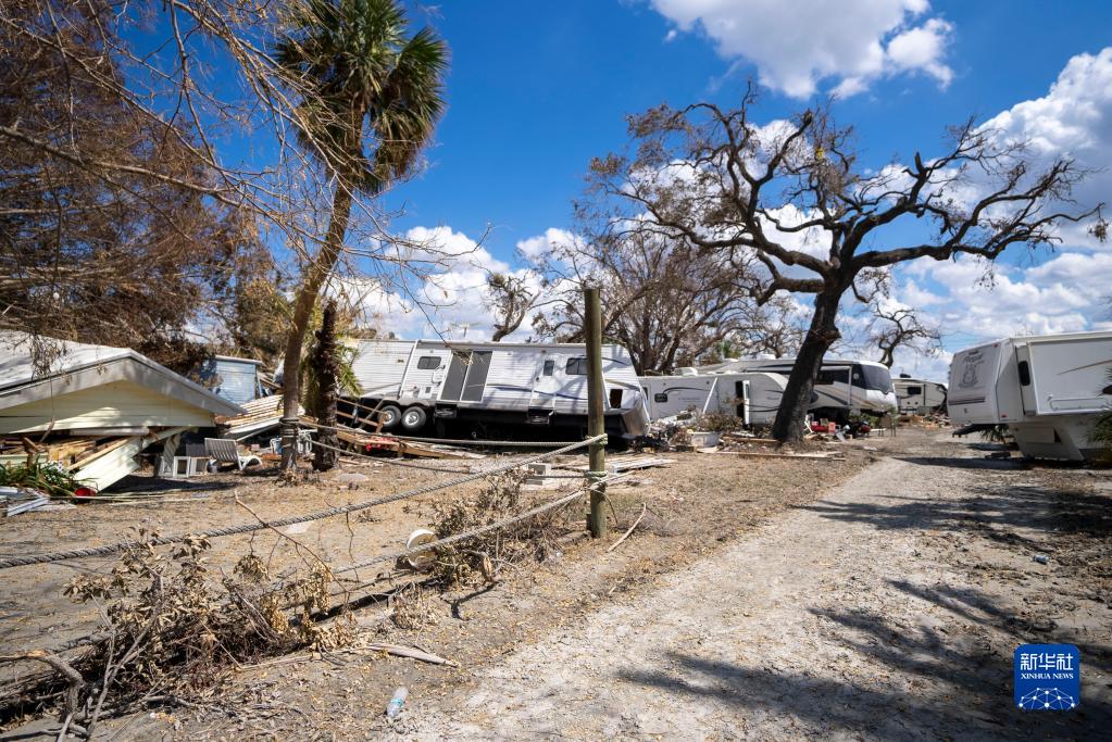 這是10月4日在美國佛羅里達州邁爾斯堡拍攝的遭颶風(fēng)“伊恩”破壞的房車(chē)營(yíng)地。 新華社發(fā)(羅蘭多·洛佩斯攝)