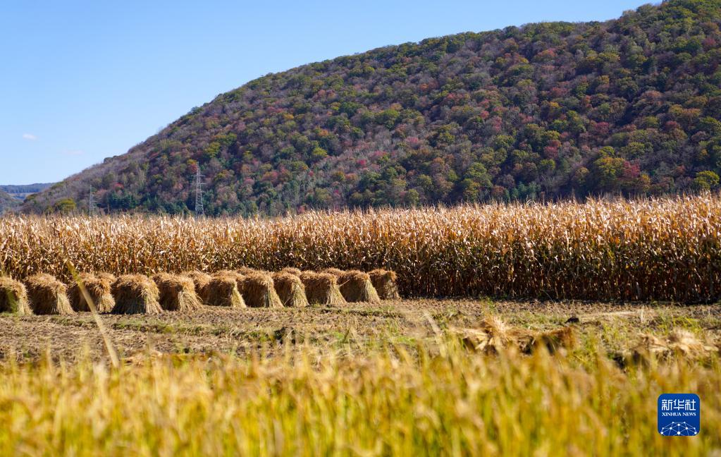 這是10月5日拍攝的吉林紅石國家森林公園附近的稻田。