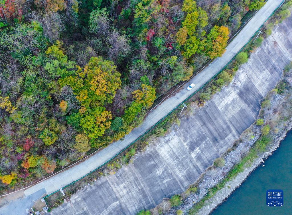 10月5日,汽車(chē)行駛在吉林紅石國家森林公園旁邊的公路上。