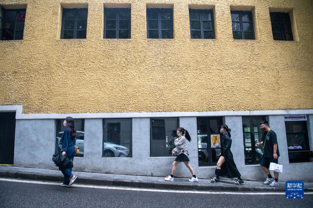 10月6日,在重慶市渝中區一處由老建筑改建的小型商業(yè)綜合體“小黃樓”外,游客在游覽參觀(guān)。