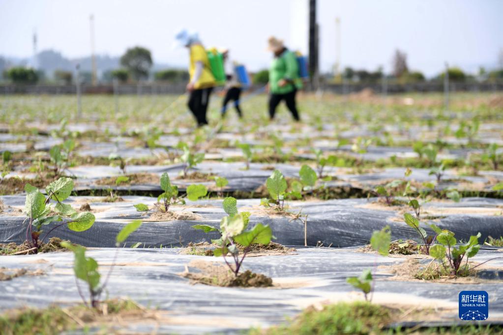 10月6日,農民在貴州省榕江縣古州鎮車(chē)江大壩蔬菜基地管護蔬菜。