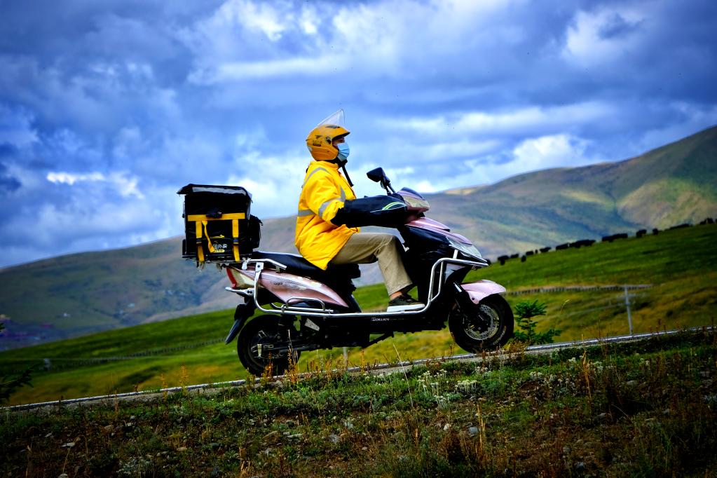 就連長(cháng)期生活在草原上的牧民也開(kāi)始點(diǎn)外賣(mài)。牧民們喜歡點(diǎn)川菜、漢堡和炸雞。甲熱經(jīng)常騎著(zhù)電瓶車(chē)馳騁在草原上送餐,沿著(zhù)牛羊踩踏出的小路,一直送到帳篷門(mén)口。
