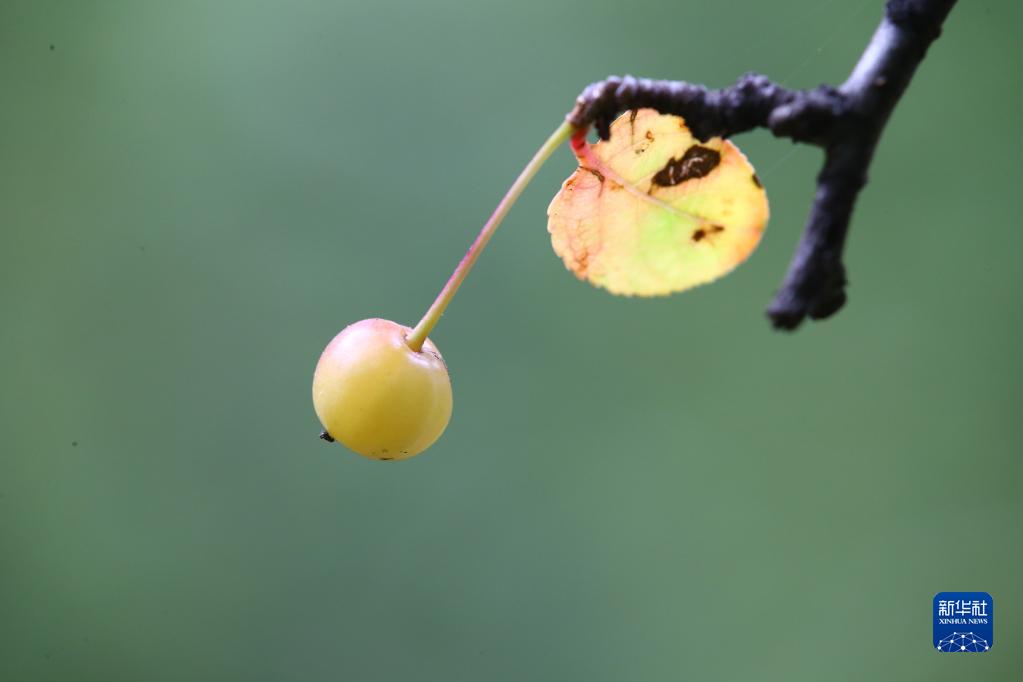 在云南省曲靖市沾益玉林廣場(chǎng)拍攝的垂絲海棠果實(shí)(10月4日攝)。