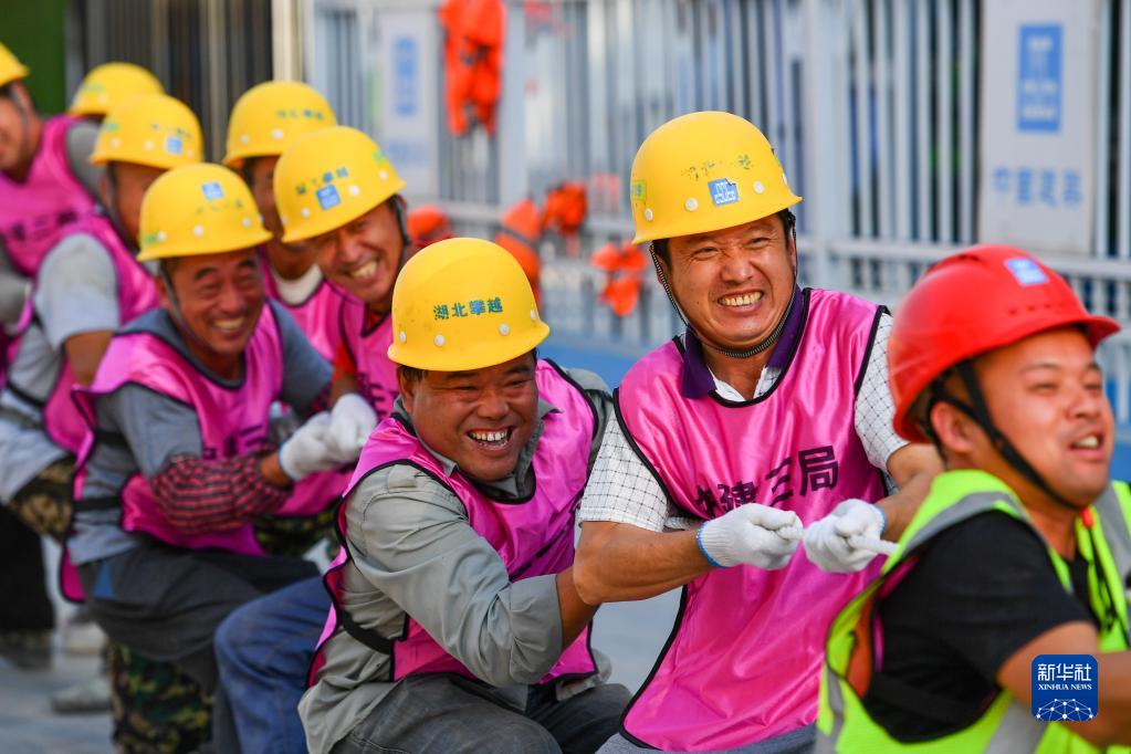 10月5日,濟南市唐冶(三甲)醫院工程項目現場(chǎng),參與施工的中建三局集團有限公司(山東)建設者們進(jìn)行工友趣味比賽,歡度國慶假期。