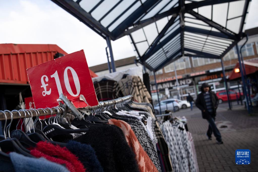 這是10月7日在英國曼徹斯特拍攝的一處集市上售賣(mài)的衣物。