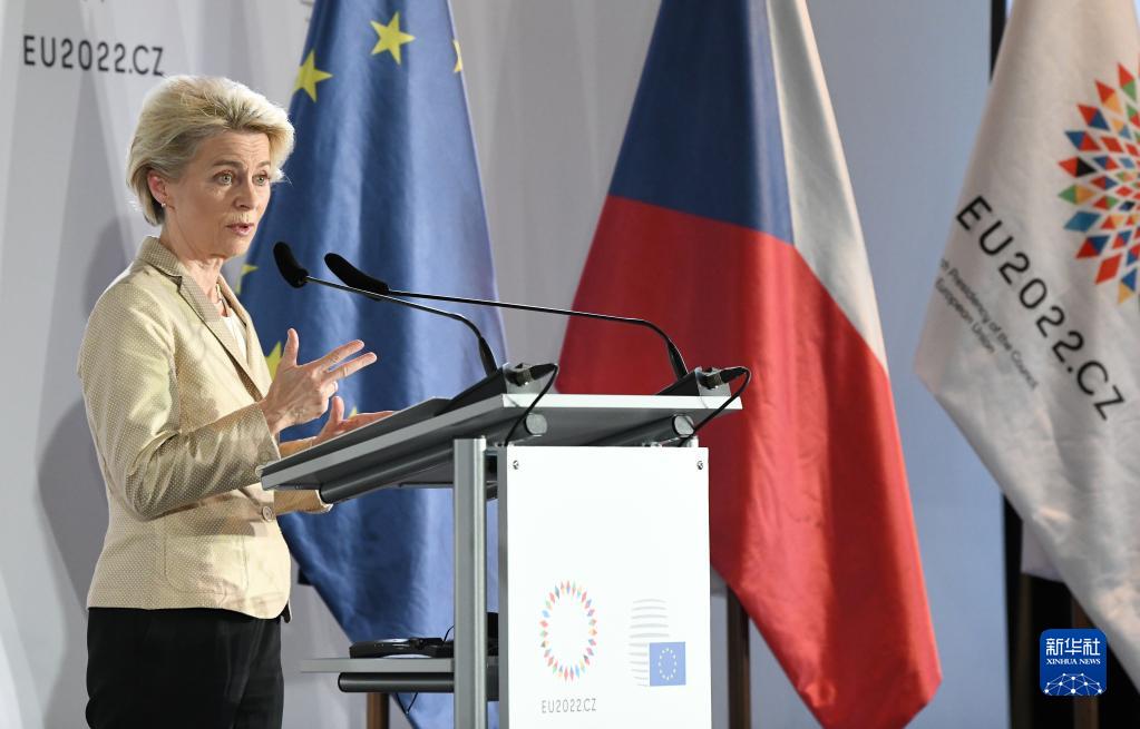10月7日,在捷克首都布拉格,歐盟委員會(huì )主席馮德萊恩出席歐盟領(lǐng)導人非正式會(huì )議的會(huì )后聯(lián)合新聞發(fā)布會(huì )。
