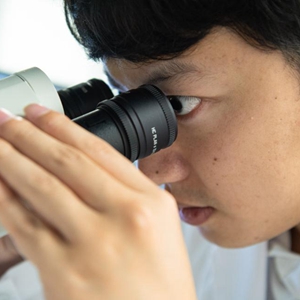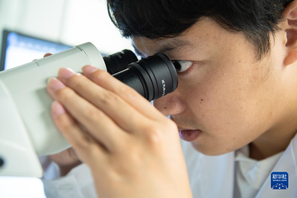 10月6日,“95后”的澳門(mén)科技大學(xué)月球與行星科學(xué)國家重點(diǎn)實(shí)驗室博士生劉子博使用光學(xué)顯微鏡觀(guān)察月球隕石薄片的顯微特征。新華社記者 張金加 攝