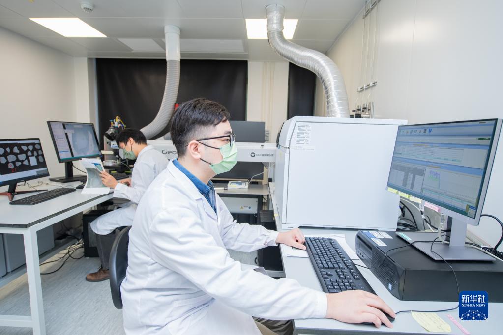 10月6日,澳門(mén)科技大學(xué)月球與行星科學(xué)國家重點(diǎn)實(shí)驗室博士生梁柏健在實(shí)驗室工作。新華社記者 張金加 攝