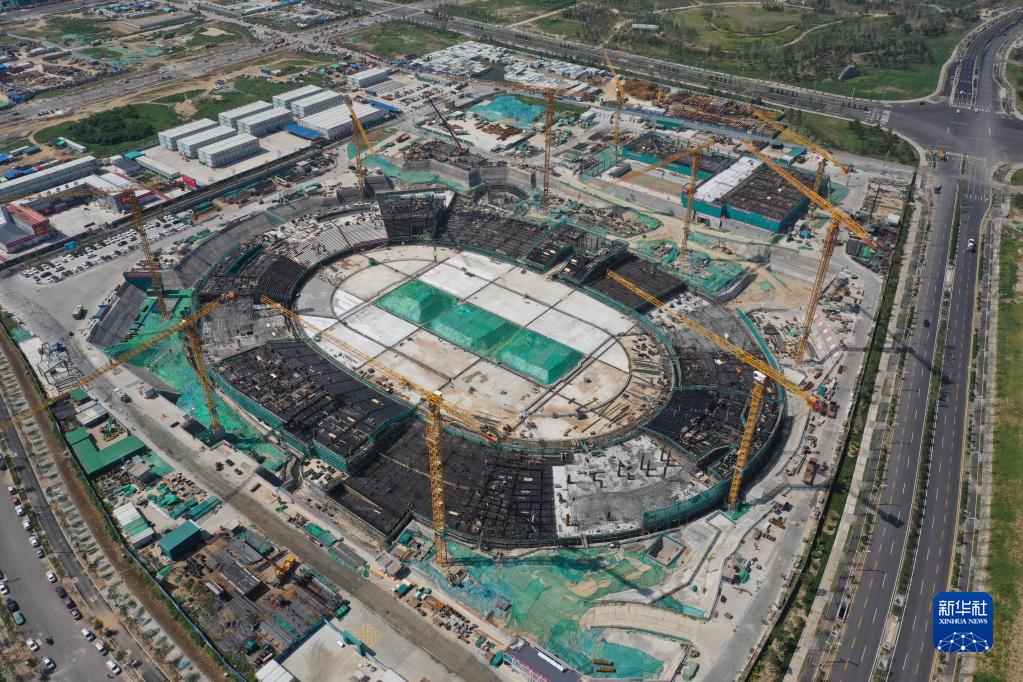 2022年9月1日拍攝的位于雄安新區啟動(dòng)區的體育中心項目建設現場(chǎng)(無(wú)人機照片)。