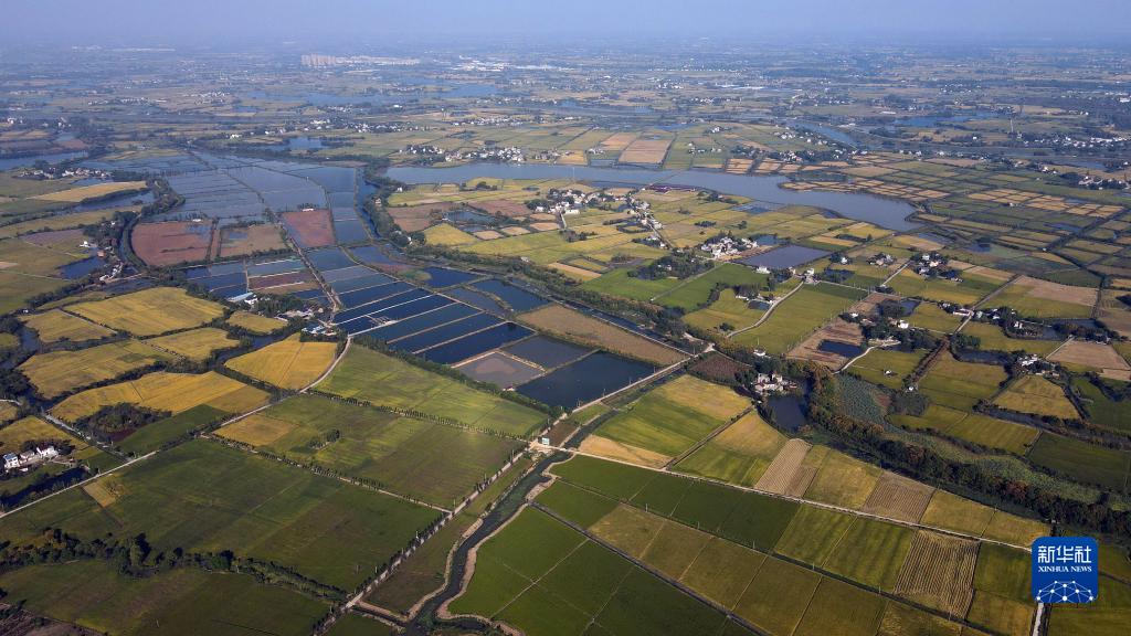 10月11日在安徽省蕪湖市繁昌區平鋪鎮拍攝的稻田(無(wú)人機照片)。