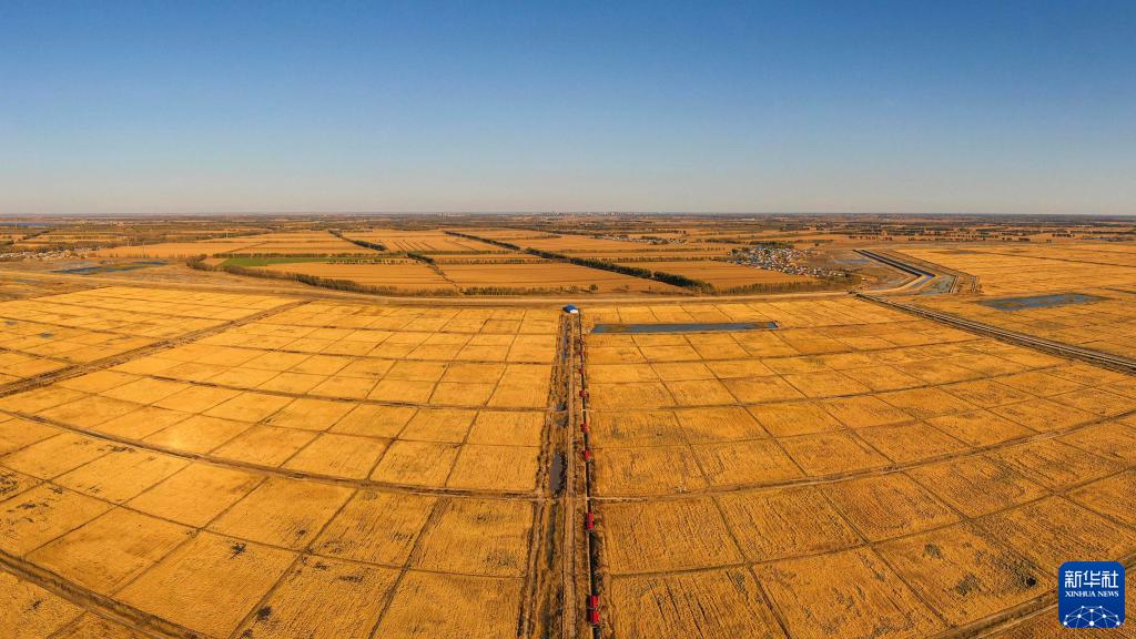金秋十月,吉林省大安市的田野里一派豐收景象,當地農民搶農時(shí)、忙秋收,確保顆粒歸倉。