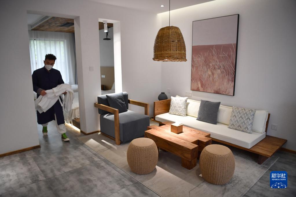 2022年10月13日,西安市長(cháng)安區子午街道抱龍村一家民宿的管家在整理房間。