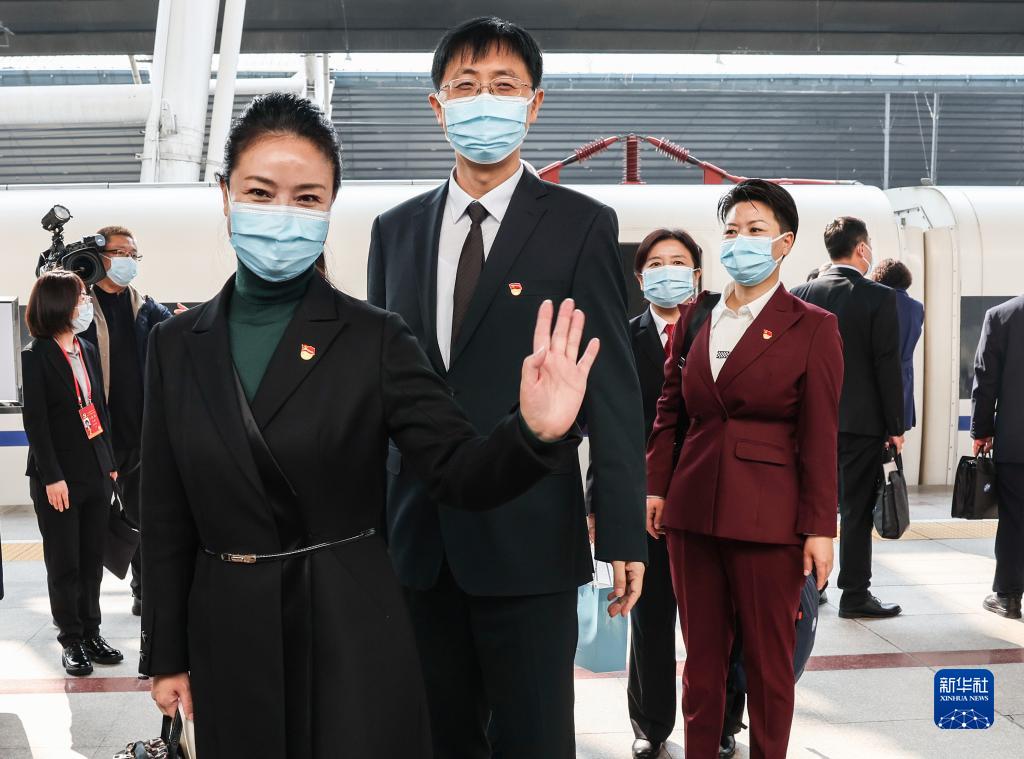 10月14日,來(lái)自山西省的黨的二十大代表乘高鐵抵達北京西站。