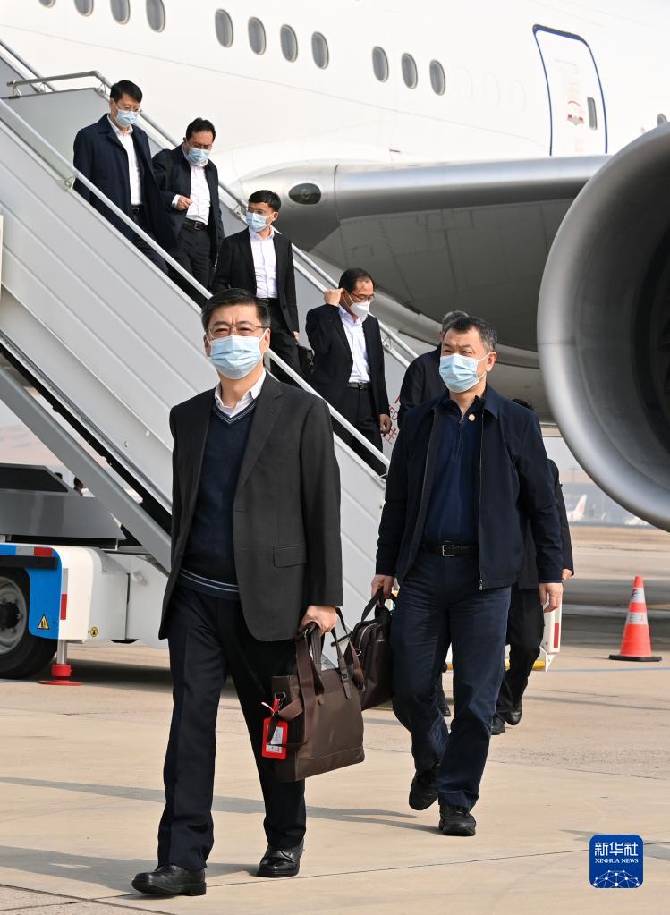 10月14日,來(lái)自上海市的黨的二十大代表乘飛機抵達北京首都國際機場(chǎng)。