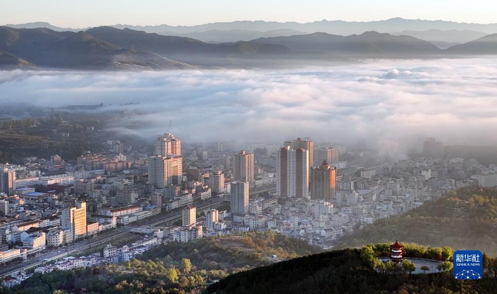 深秋時(shí)節,久雨初霽的陜西省商洛市洛南縣城云霧繚繞,巍峨秦嶺、奔騰洛河、山城建筑若隱若現,唯美夢(mèng)幻。