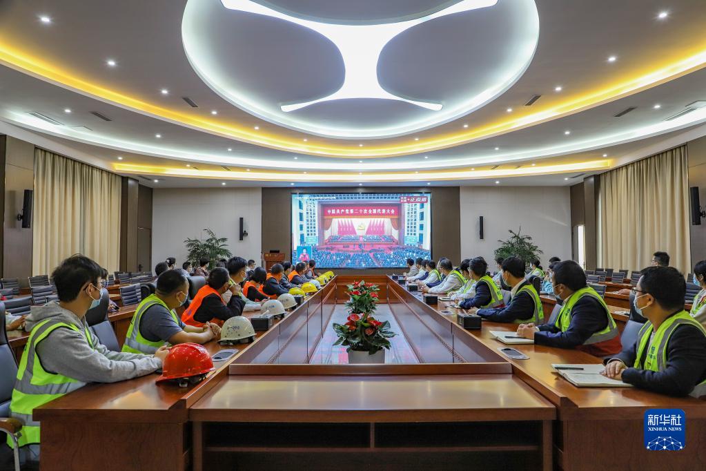 10月16日,在重慶江北國際機場(chǎng)T3B航站樓項目部,中建八局西南公司一線(xiàn)職工收看中國共產(chǎn)黨第二十次全國代表大會(huì )開(kāi)幕會(huì )。