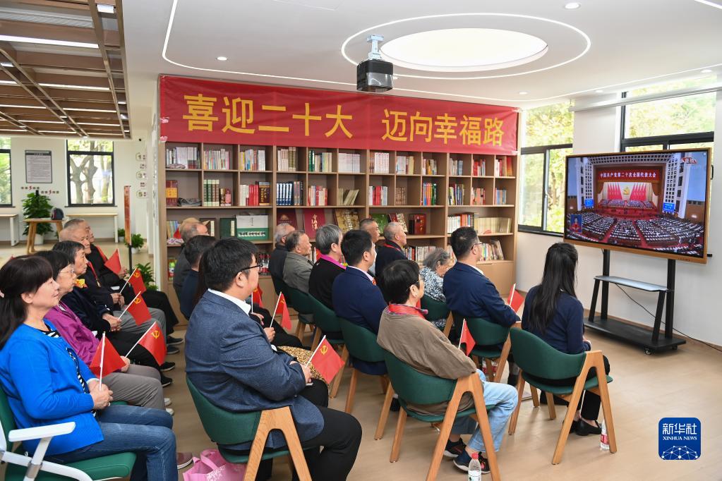 10月16日,浙江省杭州市西湖區翠苑街道翠苑一區社區的黨員觀(guān)看中國共產(chǎn)黨第二十次全國代表大會(huì )開(kāi)幕會(huì )。