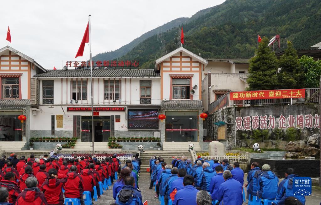 10月16日,在四川省阿壩州汶川縣映秀鎮漁子溪村,村民在收看中國共產(chǎn)黨第二十次全國代表大會(huì )開(kāi)幕會(huì )。