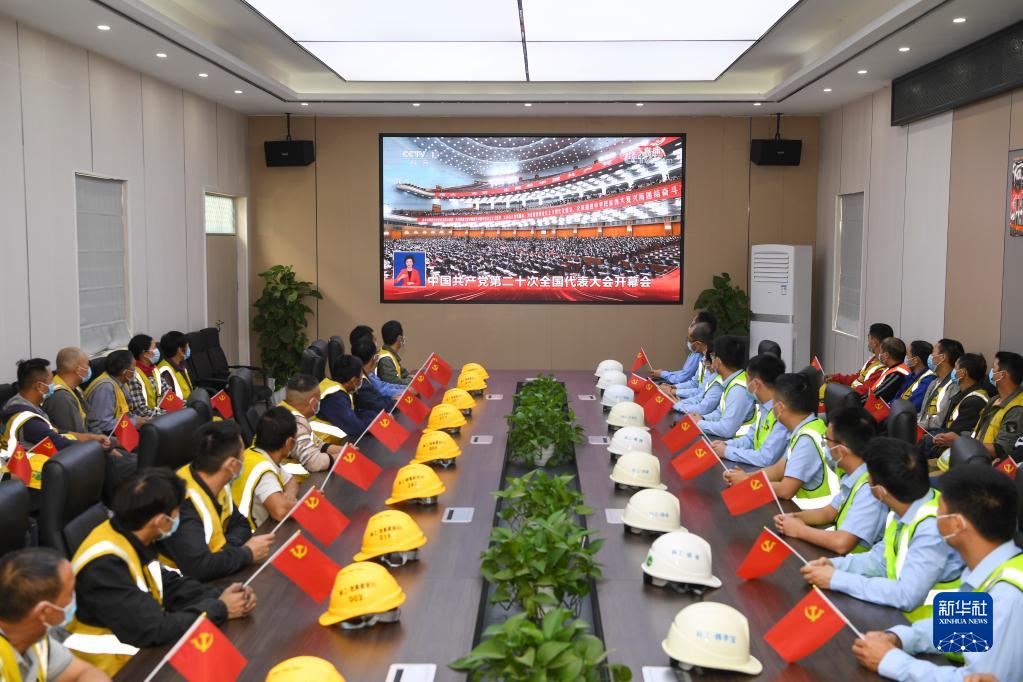 10月16日,中建科工重慶聯(lián)合產(chǎn)業(yè)孵化基地項目建筑工人在收看中國共產(chǎn)黨第二十次全國代表大會(huì )開(kāi)幕會(huì )。