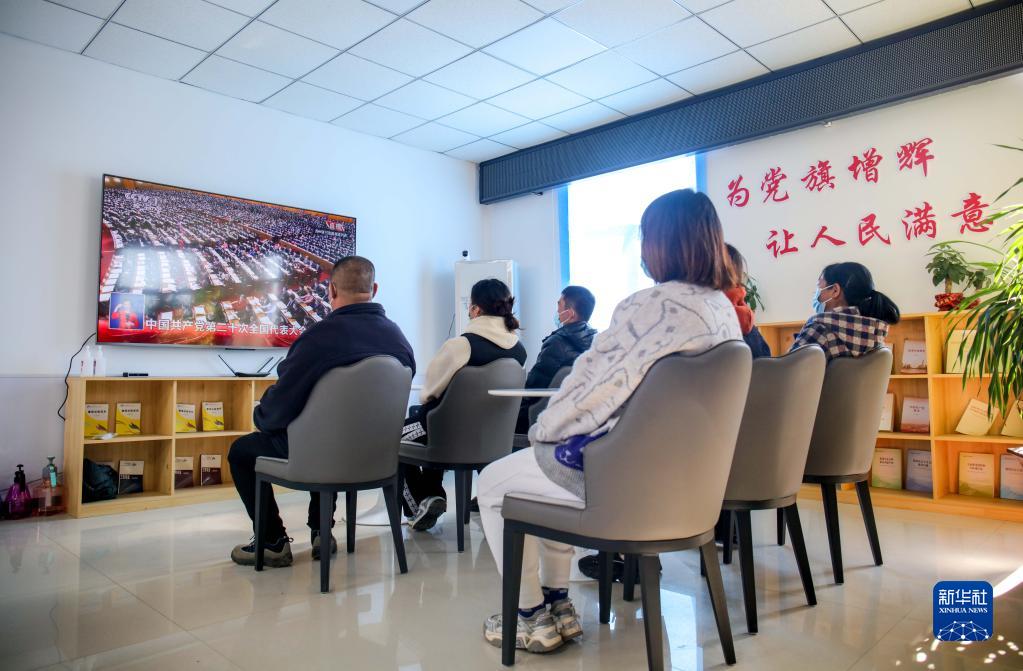 10月16日,在內蒙古自治區通遼市科爾沁區錢(qián)家店鎮孔家窩堡村,村民收看中國共產(chǎn)黨第二十次全國代表大會(huì )開(kāi)幕會(huì )。