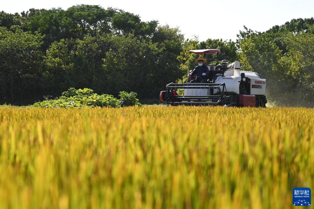 近日,浙江省湖州市吳興區八里店鎮種植的水稻迎來(lái)收獲季節,農戶(hù)操作收割機在稻田里作業(yè),呈現一幅幅美麗的豐收圖景。