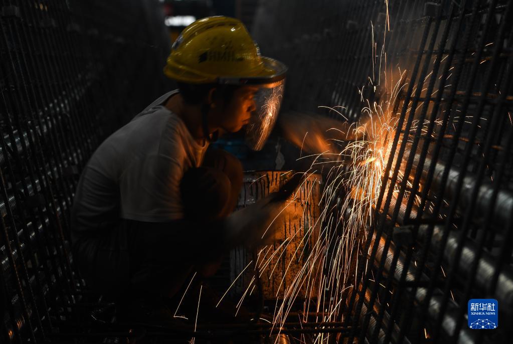 10月18日,工人在黃茅??绾Mǖ乐腔哿簣?chǎng)進(jìn)行焊接作業(yè)。