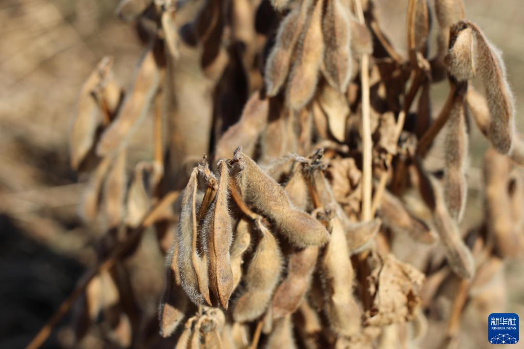10月7日在遼寧沈陽(yáng)市法庫縣依牛堡子鎮崔家屯村拍攝的成熟大豆豆莢。