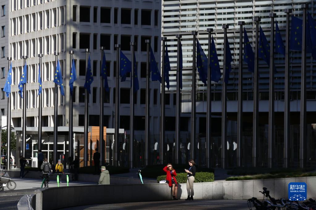 10月18日,人們在位于比利時(shí)布魯塞爾的歐盟委員會(huì )總部大廈外交談。