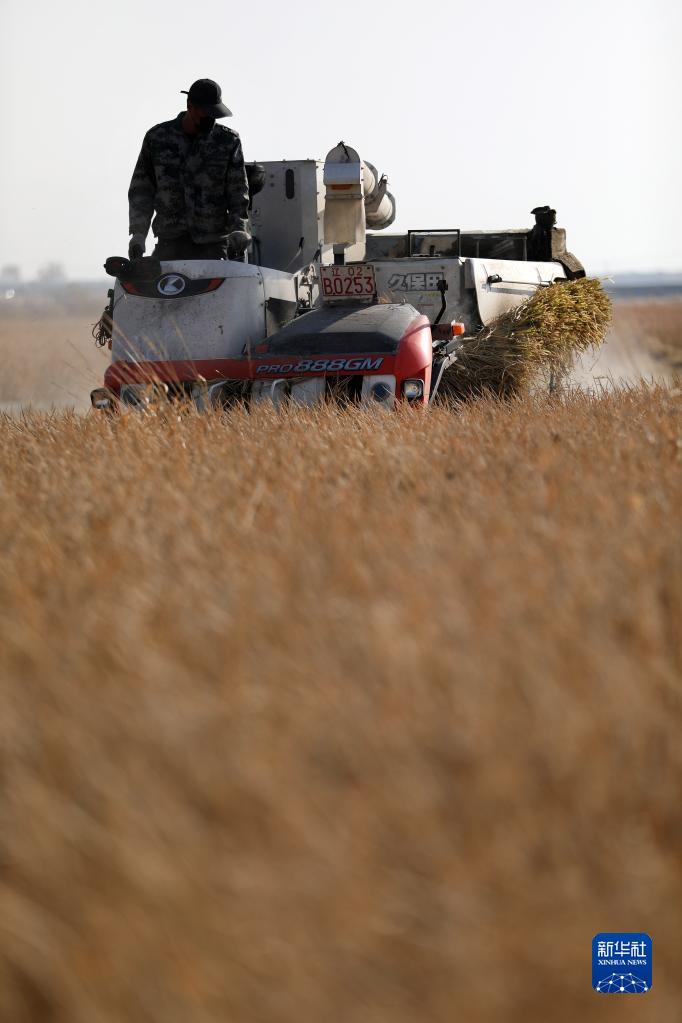 10月19日,在沈陽(yáng)市蘇家屯區林盛街道沙河站村,村民駕駛收割機收割水稻。