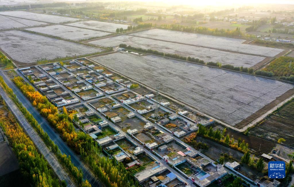俯瞰新疆沙雅縣紅旗鎮一處棉田(10月18日攝,無(wú)人機照片)。
