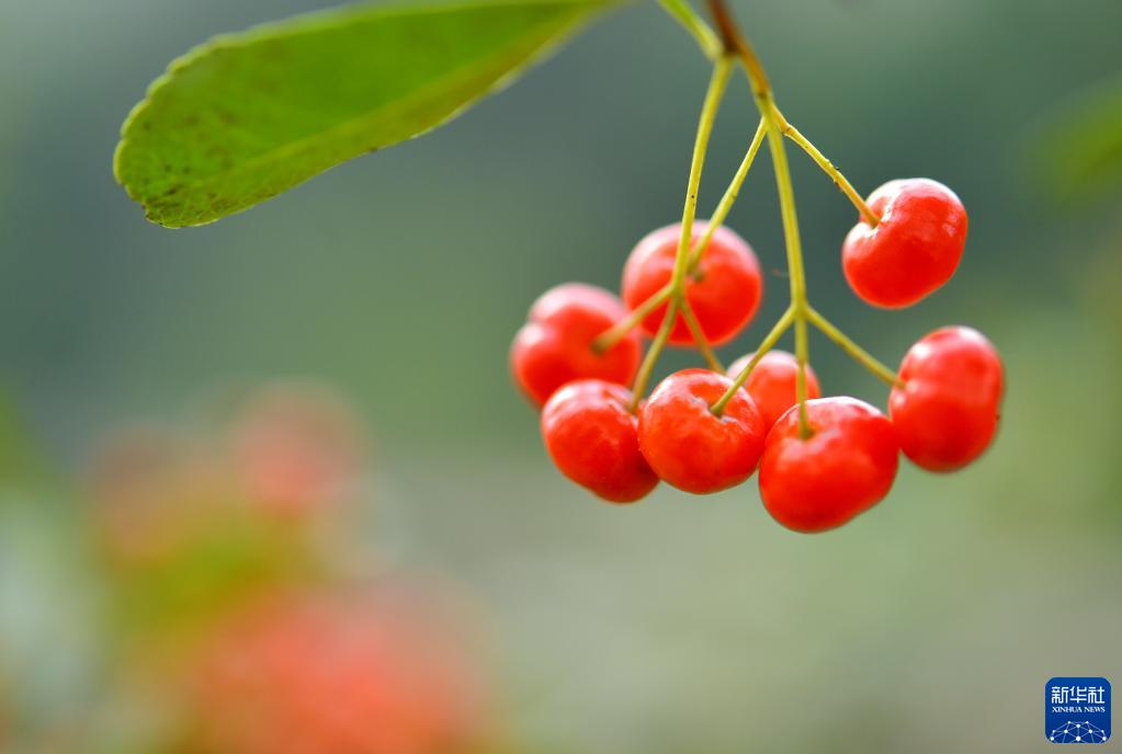 10月17日,在湖北省恩施土家族苗族自治州宣恩縣貢水河國家濕地公園,果子成熟。