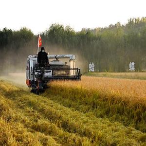 在西安市長(cháng)安區王曲街道皇甫村,村民駕駛收割機收割水稻(10月21日攝)。