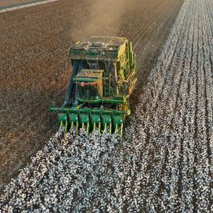 秋日,我國最大棉花生產(chǎn)基地新疆進(jìn)入棉花大規模采收季,大型機械忙碌在天山南北的棉田之中。